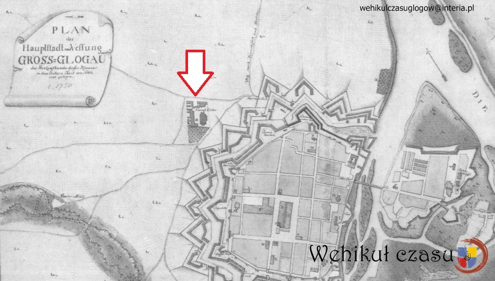 Kilka tygodni później, w dość uroczysty sposób udano się przez Bramę Brzostowską procesją przez umocnienia i ugory w kierunku południowo-wschodnim. Żołnierz z warty odmierzał przepisowe 300 kroków. W Świdnicy był to rosły grenadier i kroki ponoć stawiał duże. Jak było w Głogowie? W każdym razie w obecności cesarskiego namiestnika, burmistrza, rajców, pisarza miejskiego i oberwachtmeistra (majora) z komendy twierdzy, z udziałem mieszczaństwa i gapiów ustalono miejsce budowy. Wyznaczono prostokątny plac budowy. Już 8 grudnia odprawiono na nim pierwsze nabożeństwo.
