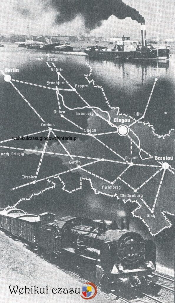 1846, 1.11, rozpoczęła się regularna komunikacja kolejowa na trasie Jankowa Żagańska–Głogów. 71 kilometrów ułożonych torów zapewniło szybką jak na ówczesne czasy łączność m.in. z Berlinem. Tu bowiem trasa łączyła się z magistralą Wrocław–Berlin. Za tą linią przyszły następne. Zbudowany most kolejowy na Odrze otworzył możliwość szybszego połączenia i kontaktu z Wielkopolską, bo położona została właśnie linia od Leszna. Miejsce głogowskiego węzła kolejowego przed II wojną światowa pokazuje załączony schemat głównych linii kolejowych na Śląsku. Brakuje odgałęzień i linii bocznych – wtedy bardzo potrzebnych i użytkowanych, jak np. do Sławy i Kolska, czy Góry i Bojanowa.